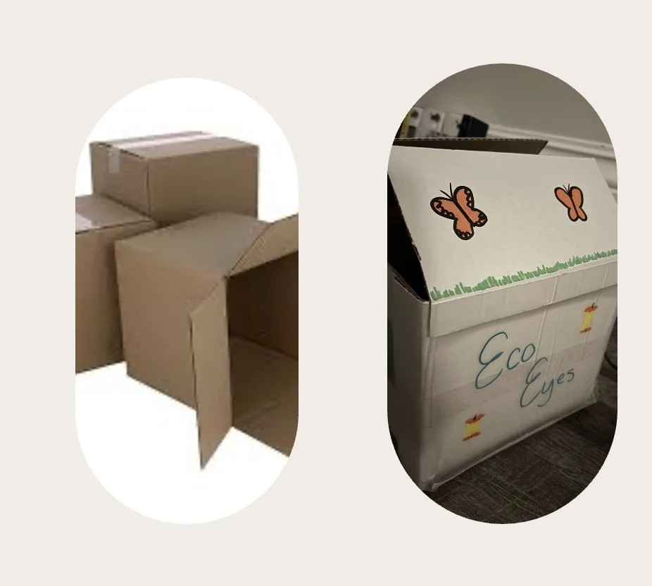 Our design process began with research on how people interact with wildlife and what makes a feeding system ethical. We used the problems in EcoEye 1.0 as a guide. From there we sketched ideas for a new system that used sensors to control food portions. We built the first prototype with light cardboard, an Arduino, an ultrasonic sensor, a motor, and a small battery pack. We wired each component and tested the distance sensor to make sure it reacted only when an animal was close.